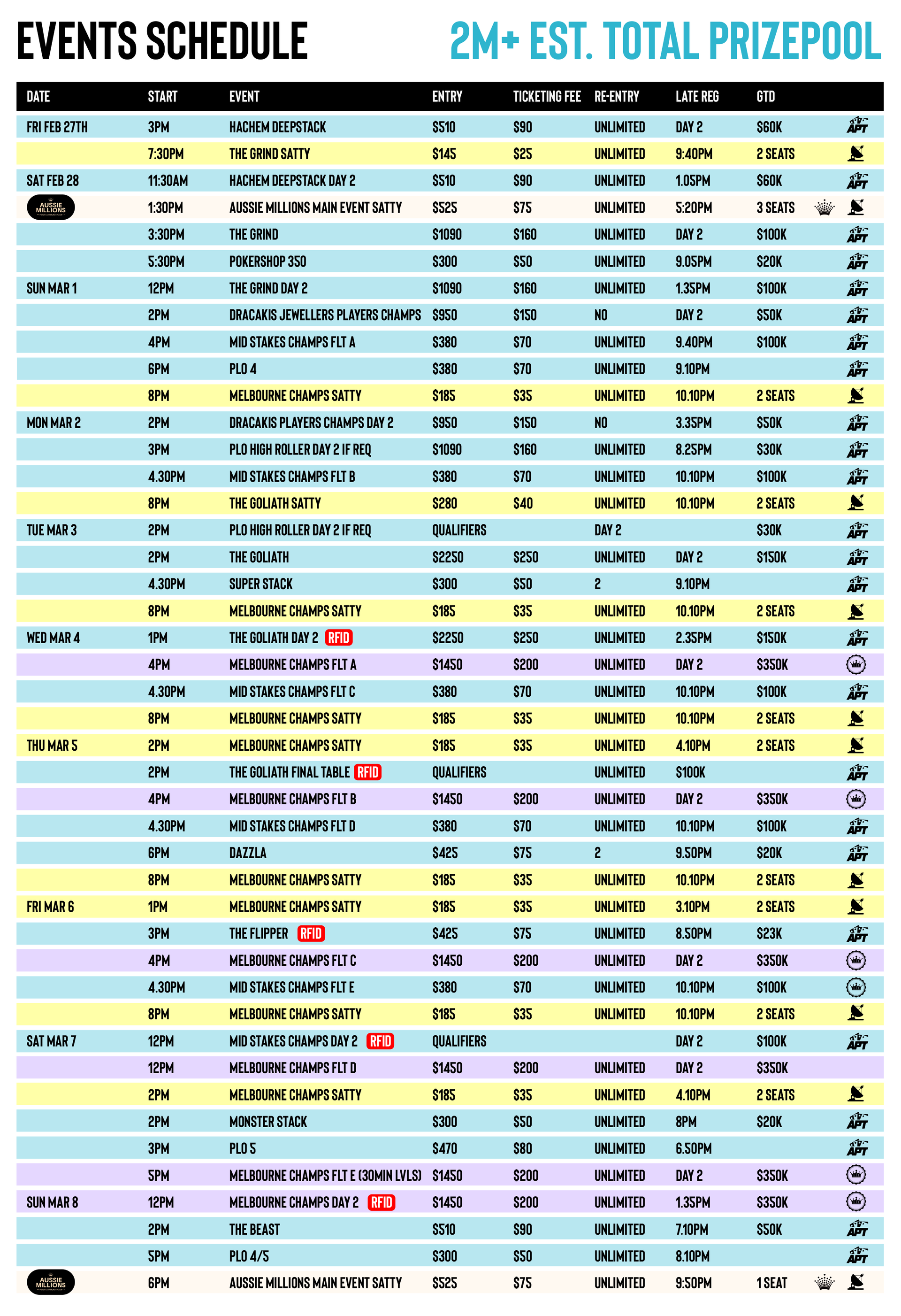 Our Series have expanded from its infancy of just 3 day events, to now 8 or 9 day series, boasting 30+ events. Players have the opportunity to play with some of Australia’s best poker players as well as international players.