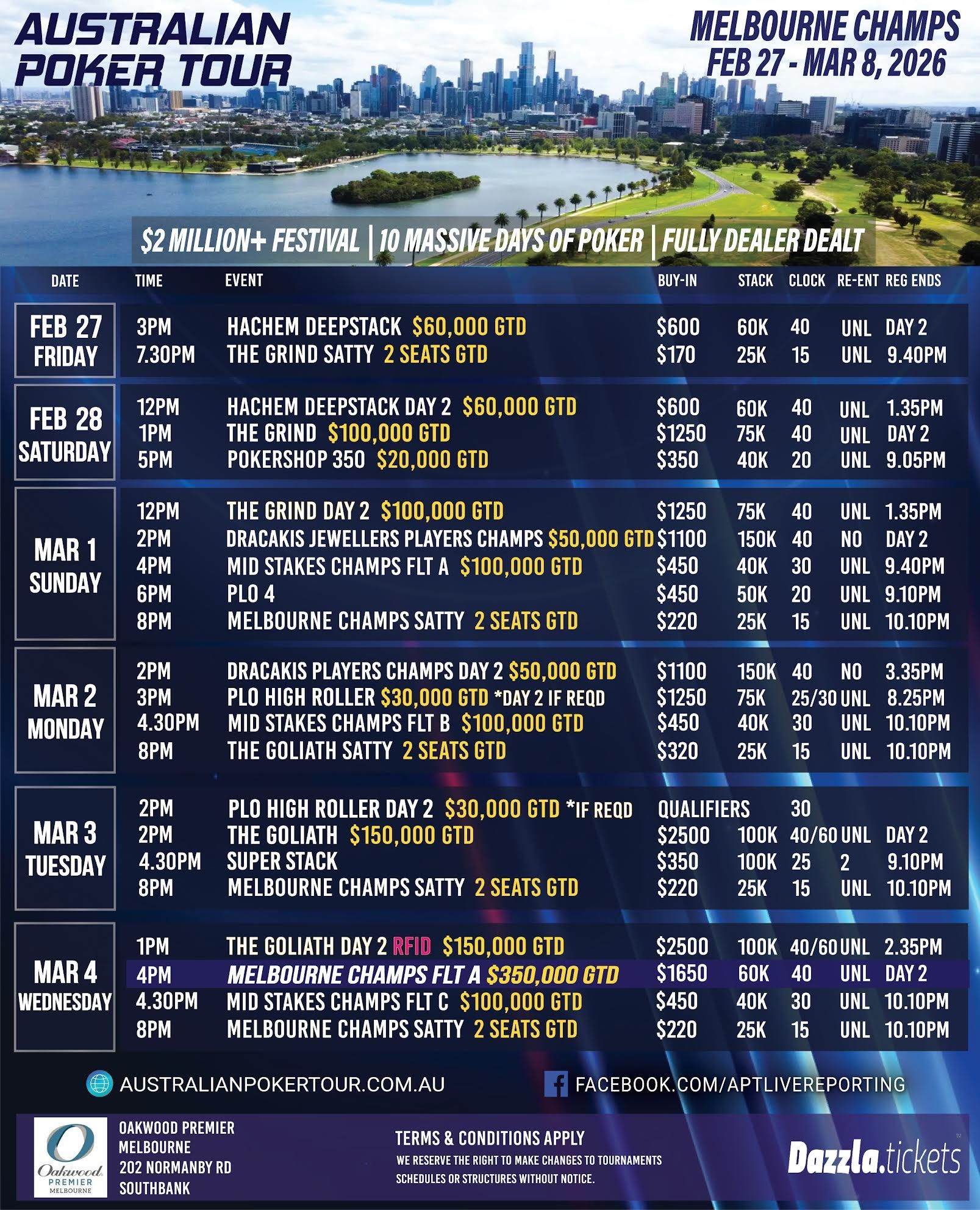 Melbourne’s tournament poker revival is here with Australia’s first fully ticketed tournament poker event – the Tournament Poker Fest Melbourne, presented by the APT.